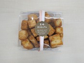 北海道産てんさいグラニュ糖をうっすらまとった、サクサク食感のクッキーです。生地をしっかり寝かせ、手作業で成形後、一枚一枚丁寧にカットし、てまひまかけて焼き上げています。
