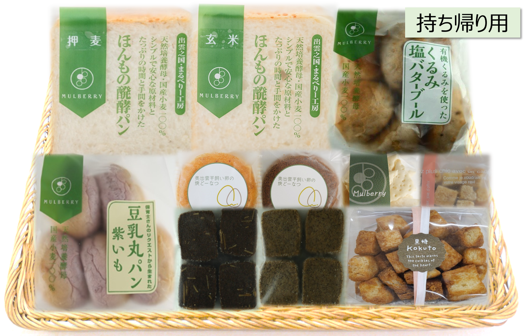 原材料:小麦粉(国産)、黒糖(沖縄県産)、木次牛乳(島根県産)、よつ葉バター(生乳(北海道産))、小麦全粒粉(北海道産)、生クリーム(国産)、あこ天然酵母、てんさいグラニュ糖(北海道産)、竹本油脂の太白ごま油、赤穂の天塩、三温糖
