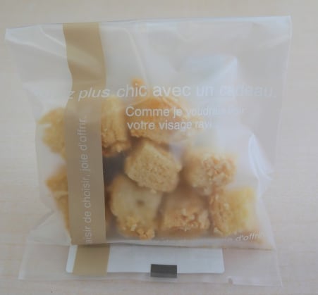 原材料:小麦粉(岡山県産)、よつ葉バター(生乳(北海道産))、てんさいグラニュ糖(北海道産)、アーモンドプードル、卵(島根県産)、伯方の塩