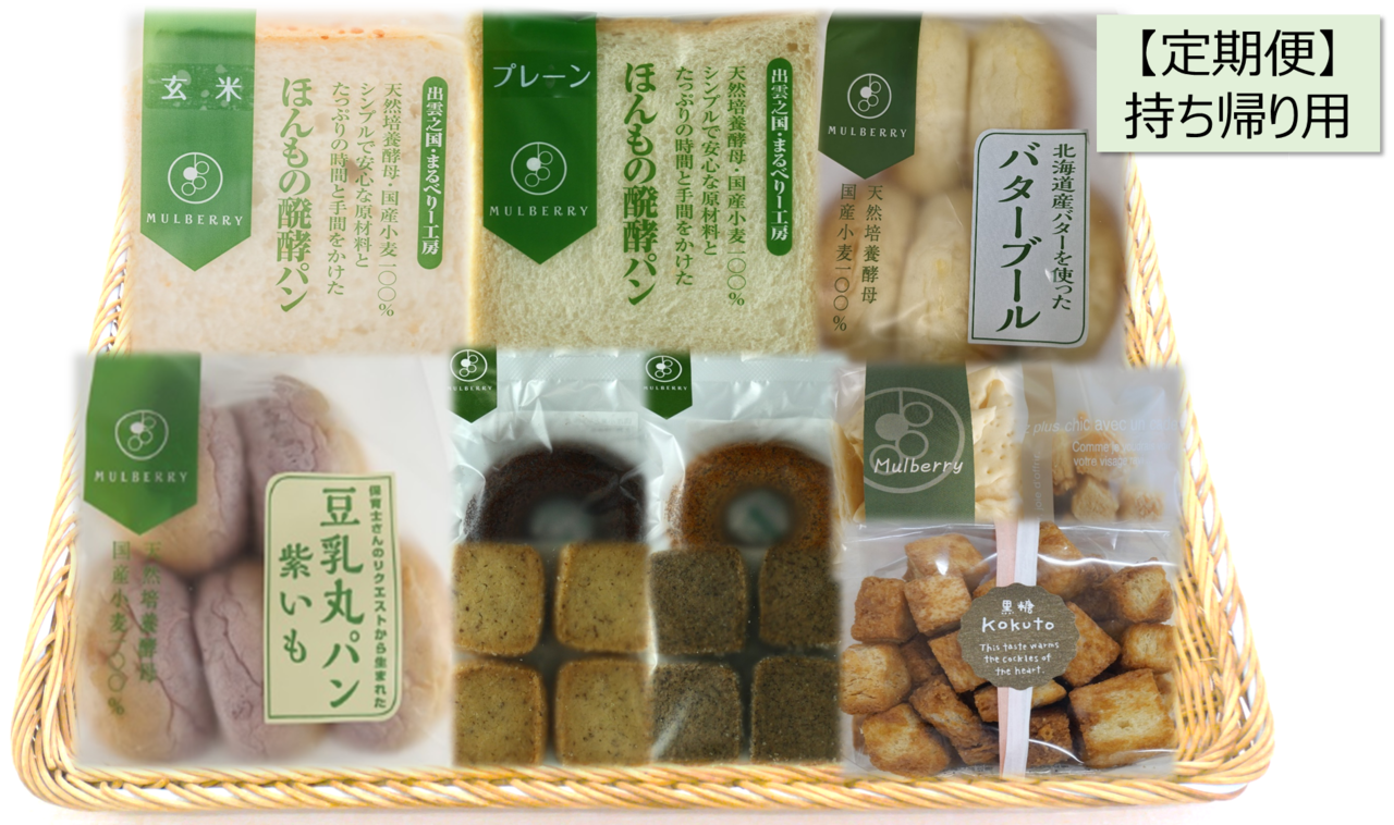 原材料:小麦粉(国産)、木次牛乳(島根県産)、よつ葉バター(生乳(北海道産))、卵(島根県産)、てんさいグラニュ糖、あこ天然酵母、赤穂の天塩